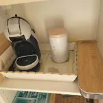 Dit appartement biedt voorzieningen voor het zelf koken, zoals een complete keuken, en een eethoek buiten voor het gemak van de gasten.